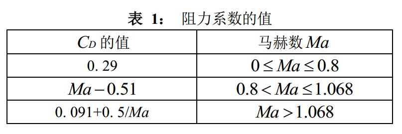 通過查閱相關參數(shù)數(shù)據(jù)得到衛(wèi)星質(zhì)量m=13200kg, 并假設衛(wèi)星受阻面積為16m2, 對地軌道速度為7800 m/s, 即Ma= 22.9. 從表 1中我們可以得到相應的CD=0.11283. 從ρ(h)函數(shù)關系可以解出如下表所示的在一些特定高度的大氣密度估計值.