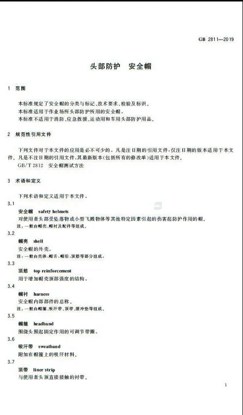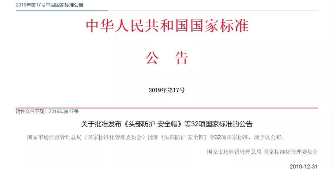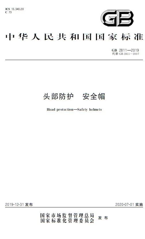 國家市場監(jiān)管總局、國家標(biāo)準(zhǔn)委批準(zhǔn)發(fā)布新版安全帽標(biāo)準(zhǔn)GB2811-2019《頭部防護 安全帽》,將于2020年7月1日起正式生效。
