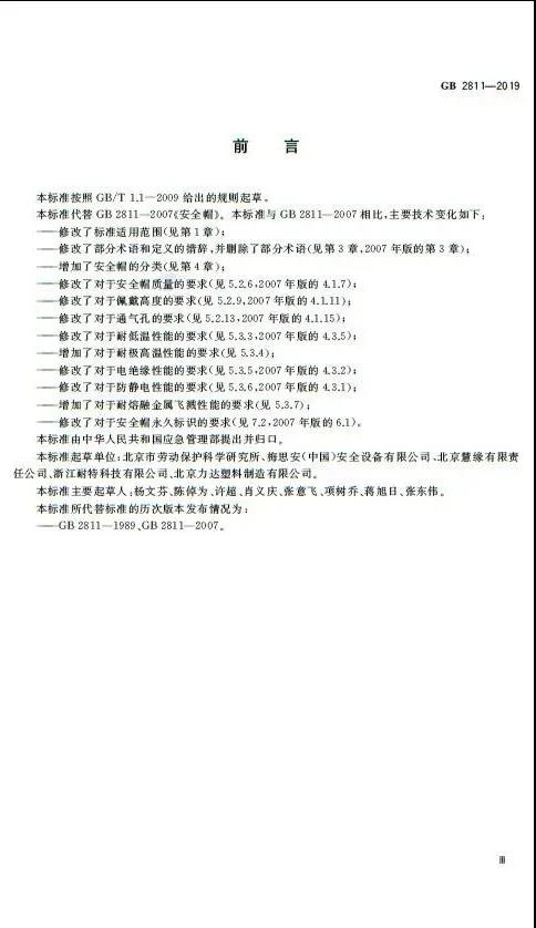 相比較于舊版GB2811-2007,新版安全帽標(biāo)準(zhǔn)GB2811-2019《頭部防護 安全帽》做出了如下修改:
