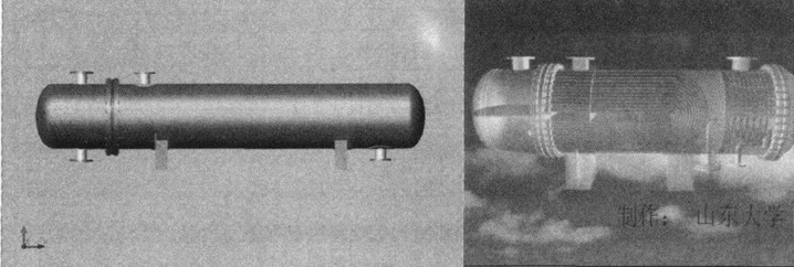 基于以上思路,我和我的同事們完成了一個正在測試的換熱器設(shè)計軟件。首先,以場協(xié)同理論為基礎(chǔ),采用分段直接設(shè)計,尋找一個簡單的判別式優(yōu)化傳熱結(jié)果。這樣,就可以在換熱器設(shè)計中采用傳統(tǒng)方法,將相關(guān)數(shù)據(jù)輸人之后,自動進行不同的計算。整個軟件最大的特點是界面非常友好,比如說,計算完成之后,會自動形成一個換熱器的三維圖,見圖1。這個三維圖可以使設(shè)計者以不同的角度進行觀察,看一看是否足夠漂亮,還有哪一些細節(jié)沒有考慮到,等等。同時,這個軟件還會把所有的部件自動分離出來,給設(shè)計者以足夠的空間,將其自身的智慧、感覺以及價值取向自由地表達出來。