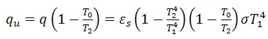 (1) 等輻射熱流傳熱: 熱輻射能在傳輸過程中的有效能損失,在等輻射熱流傳熱的情況下,跟熱傳導(dǎo)沒有區(qū)別,輻射傳熱熵產(chǎn)因子也是由接收面和發(fā)射面的溫度倒數(shù)差確定,輻射傳熱熵產(chǎn)為